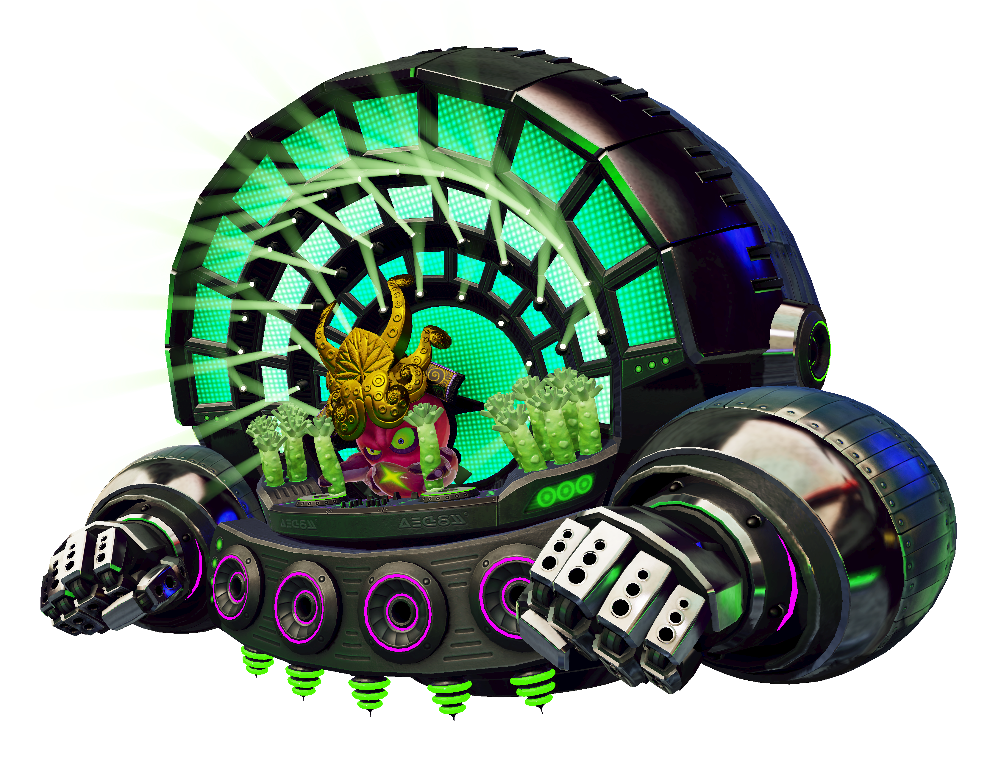 The king of the Octarians, Octavio is responsible for the events leading up to Splatoon's Hero Mode Campaign, and serves as its final boss. Piloting a giant mech, Octavio creates sick beats and launches rockets to destroy you, often missing due to their slow speed. In the end, he is defeated by the player and contained within a fishbowl shaped prison for his crimes.